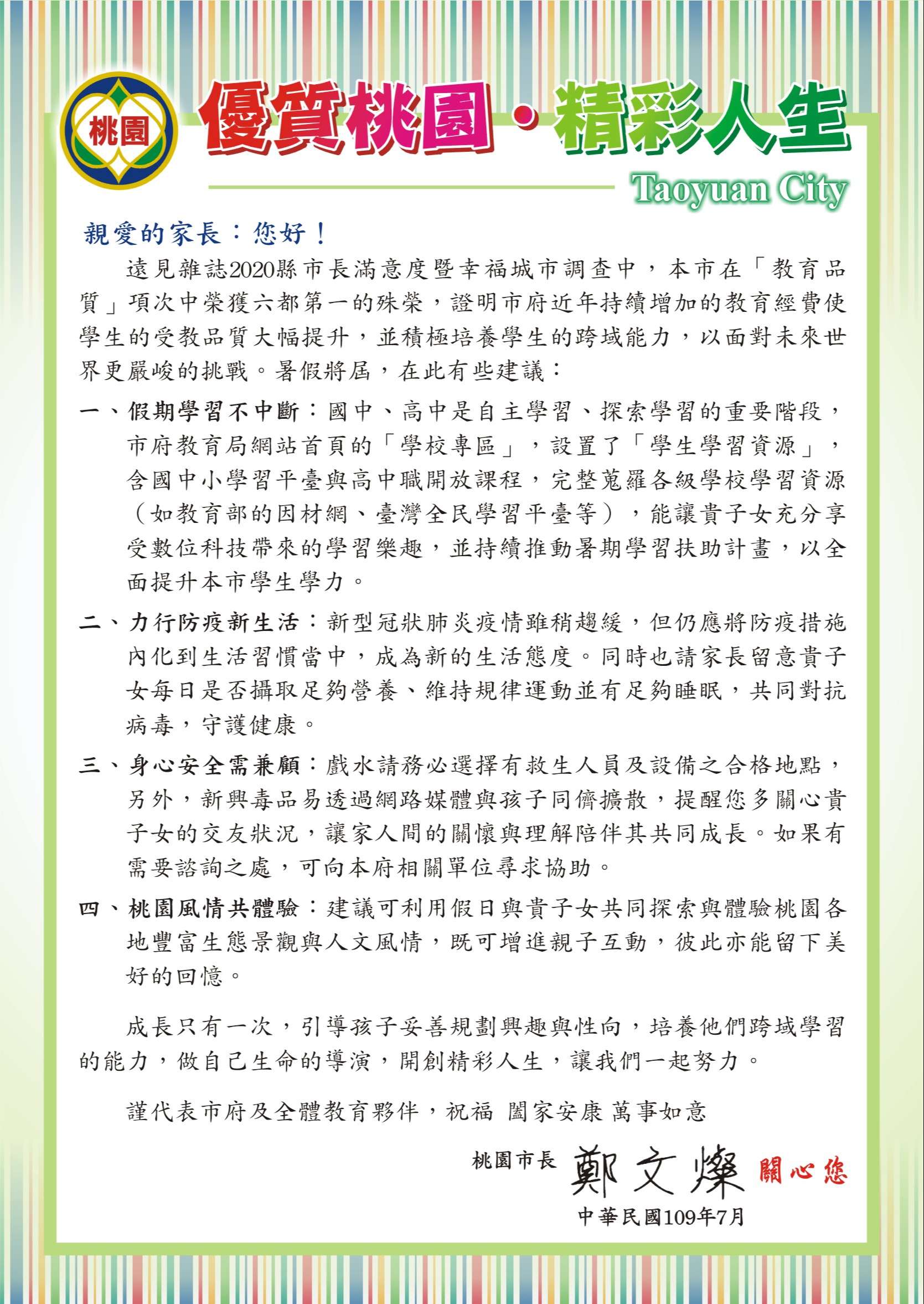 桃園市政府-給家長的一封信